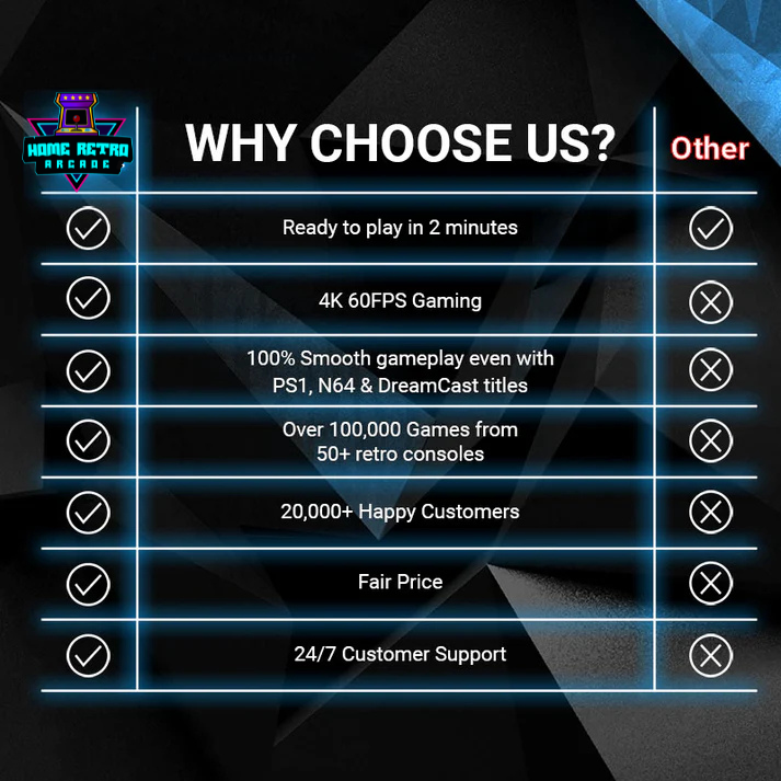 Unlike cheap consoles that are plagued with lag, crashes, and glitches, the Home Retro Arcade delivers a premium gaming experience.